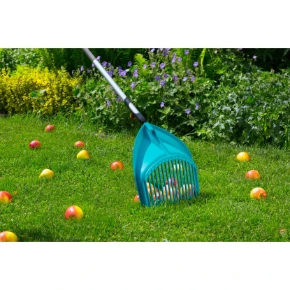 Der Gardena Combisystem-Schaufel-Rechen ist ein Vielzweckgerät zum Rechen, Schaufeln und Sieben. Blätter, Fallobst, Gras-, Heckenschnitt und Vertikutiergut können zusammengerecht, anschließend leicht aufgenommen und in einen beliebigen Behälter geschaufelt werden. Es lassen sich auch kleinere Zweige, Unkraut und Wurzeln aus der Erde sieben und Laub aus dem Teich abschöpfen. Lange Zinken aus hochwertigem Kunststoff und eine Arbeitsbreite von 36,5 cm erlauben ein leichtes, handliches und effektives Arbeiten. Der Schaufel-Rechen passt zu allen Gardena Combisystem-Stielen, wobei Gardena eine Stiellänge von 130 cm empfiehlt, abhängig von der Körpergröße.